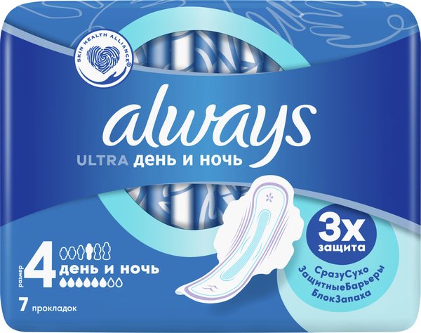 Гігієнічні прокладки Always Ultra Night (Розмір 4) з системою InstantDry миттєво вбирають вологу і утримують її всередині, забезпечуючи до 100% захисту і впевненості. Гігієнічні прокладки Always Ultra оснащені технологією нейтралізації запаху, яка блокує неприємний запах, а не просто маскує його. Гігієнічні прокладки Always Ultra товщиною всього 3 мм дарують комфорт і забезпечують неперевершений захист під час менструації. Залишайтеся під надійним захистом, як би активно ви не рухалися. Спробуйте Always Ultra Secure Night (Розмір 5), найкращі в лінійці Always Ultra гігієнічні прокладки для захисту впродовж нічного сну.
