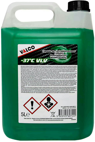Антифриз Valco G11 LR VLV Vert -37°C - це якісна охолоджувальна рідина на базі етиленгліколю. Відрізняється високою стійкістю до закипання, випаровування і піноутворення, не підвищує тиск у системі та перешкоджає появі парових пробок. Антифриз має відмінні теплообмінні властивості та забезпечує ефективне відведення надлишків теплоти від двигуна, стабільно підтримуючи оптимальну температуру для максимальної продуктивності та запобігаючи перегріву та пов'язаним з цим збоям у роботі. Низька температура кристалізації гарантує надійний захист системи від замерзання в зимовий період - рідина рекомендується для цілорічного застосування в будь-яких кліматичних зонах.
