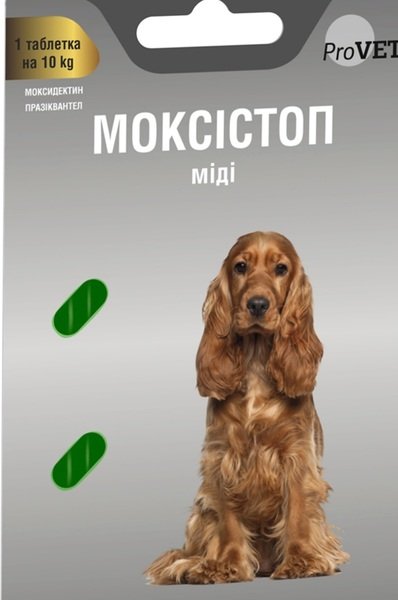 - МОКСІСТОП міді для собак 1табл. на 10кг (2табл.)(антигельмінт)