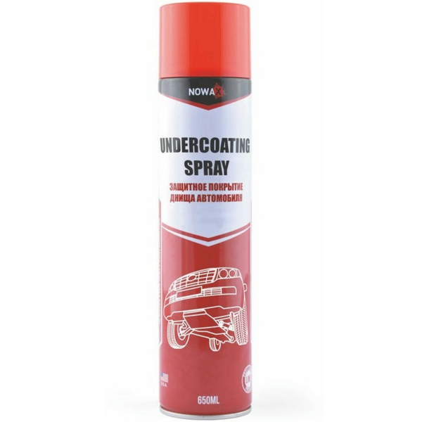 Антикорозійний резинобітумний склад Nowax тривалої дії призначений для обробки днища автомобіля, колісних арок, крил, нижніх поверхонь порогів, рам та інших елементів шасі автомобіля. Антикорозійний спрей зберігає пластичність і не розтріскується при негативних температурах, витісняє вологу зі стиків між панелями кузова, запобігає вже розпочатий процес іржавіння, утворює щільне текстуроване покриття, що захищає від ударів гравію, каміння, знижуючи при цьому вібрації й проникнення шуму в салон. Склад швидко сохне, і після висихання може фарбуватися автомобільними ґрунтами та емалями.