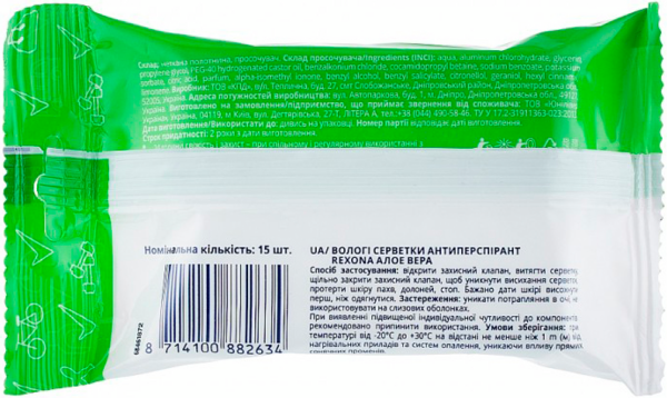 - Антиперспірант Rexona серветки Алое вера 15шт