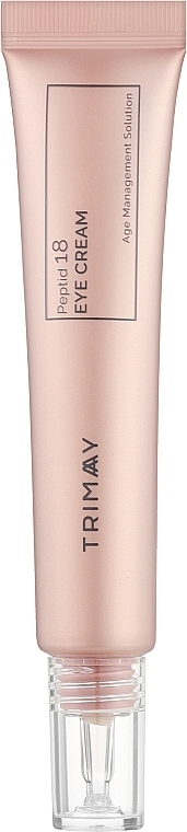 Крем для шкіри навколо очей Trimay Peptid 18 Eye Cream підтягує й ущільнює шкіру, зменшує глибину зморшок і розгладжує заломи. Він поповнює нестачу вологи та поживних речовин, усуваючи сухість і відчуття стягнутості. Підвищує еластичність шкіри й допомагає освітлити темні кола під очима. Основу крему становить екстракт морського винограду (каулерпа, "зелена ікра"), який складає 58,4% від загального складу.