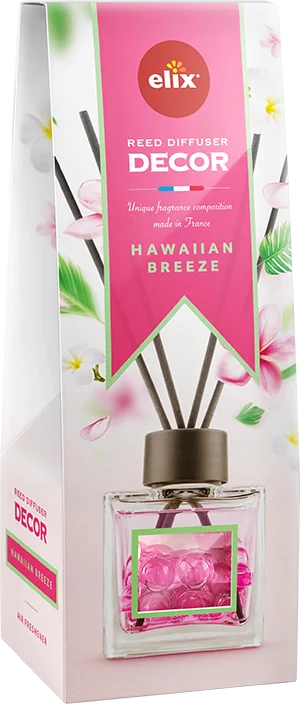 Відчуйте подих океанського бризу та екзотичних фруктів з аромадифузором Elix Hawaiian Breeze. Цей аромат перенесе вас на тропічний острів, де свіже повітря змішується з нотами ананаса, цитрусових та морського вітру. Гелеві кульки додають інтер’єру яскравості та роблять аромат більш стійким і насиченим.
