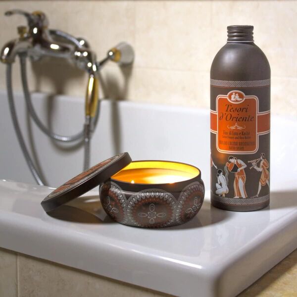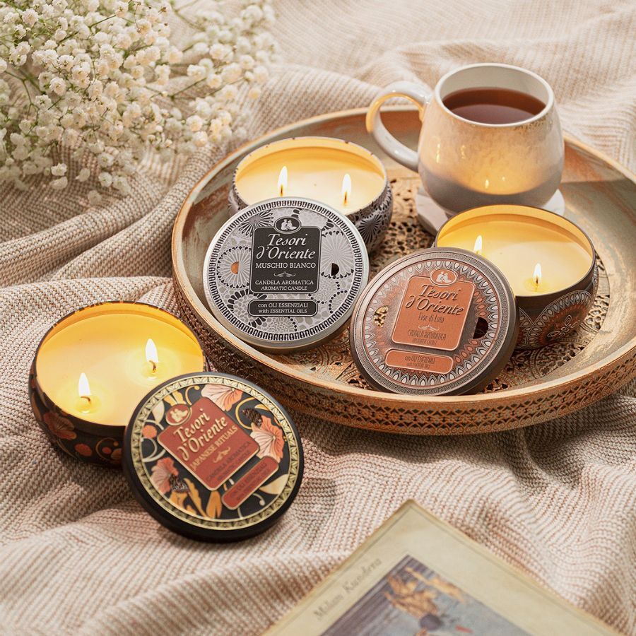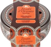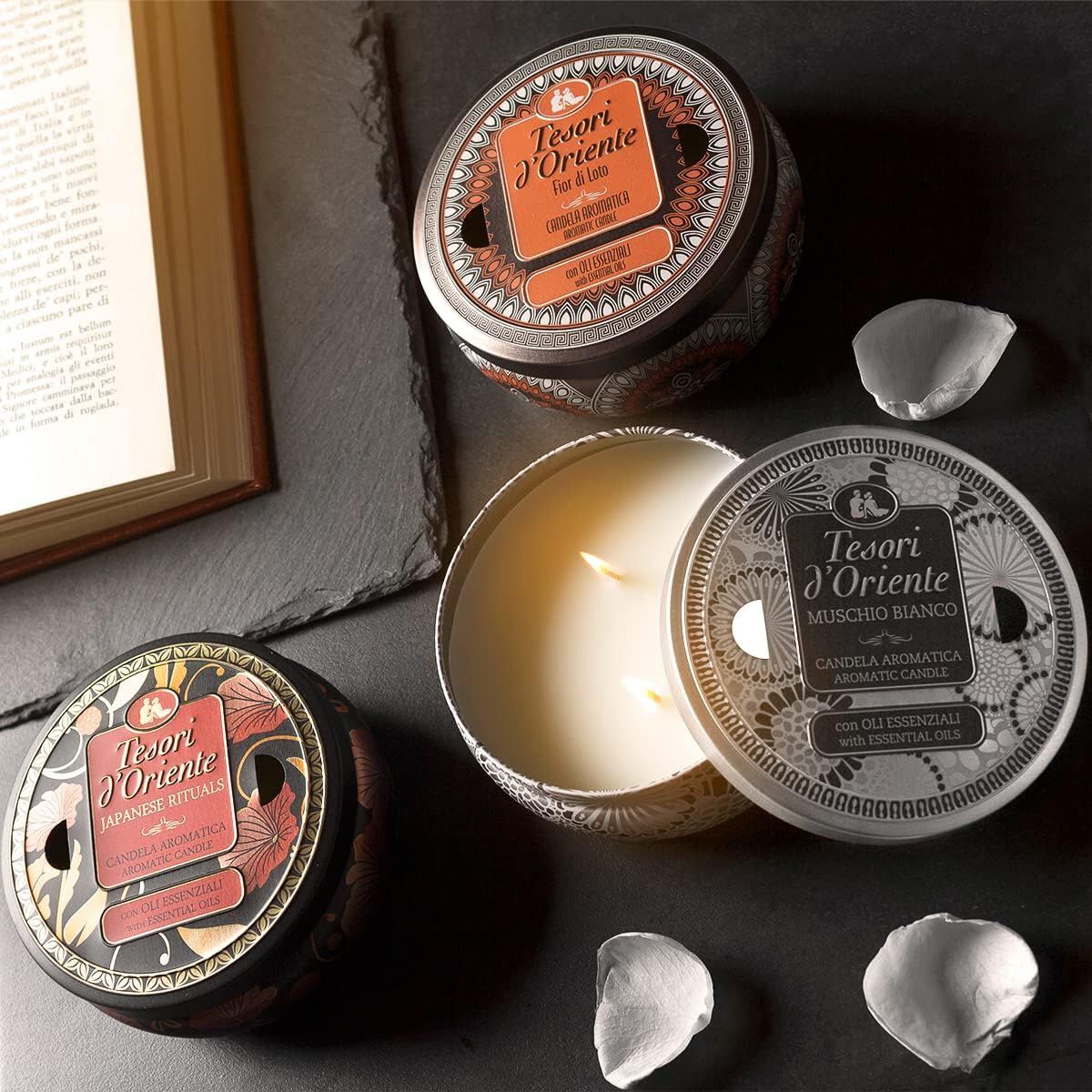 - Свічка Tesori d'Oriente зазвичай поставляється в елегантному пакуванні, що підкреслює її вишуканість і робить її ідеальним варіантом для подарунка. Дизайн пакування включає елементи, які натякають на азійську культуру, відображаючи походження символізму лотоса.