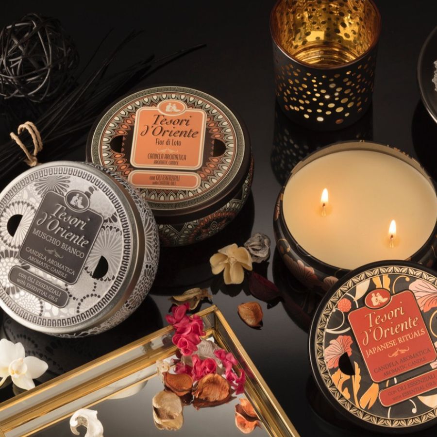 - Свічка Tesori d'Oriente зазвичай поставляється в елегантному пакуванні, що підкреслює її вишуканість і робить її ідеальним варіантом для подарунка. Дизайн пакування включає елементи, які натякають на азійську культуру, відображаючи походження символізму лотоса.