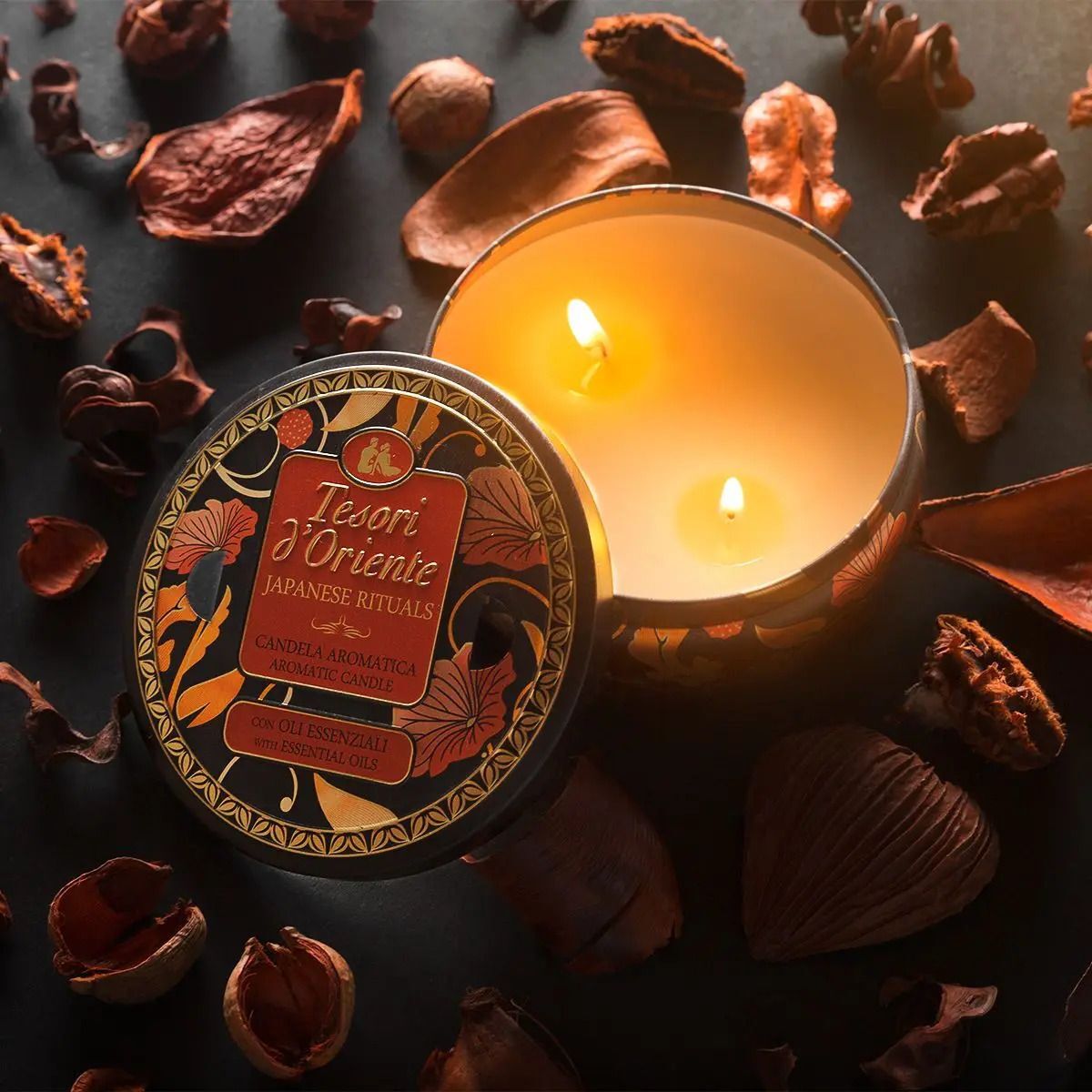 Ця ароматична свічка, зроблена з високоякісного воску та ефірних олій, випромінює інтенсивний і чарівний аромат, створюючи розслаблюючу атмосферу та безтурботність, яка пробуджує сяйво. Аромат Japanese Rituals з приємними чуттєвими акцентами випромінює ноти квітів і цінних порід дерева, переносячи вас у місце, де запалювання свічки стає вишуканою церемонією.