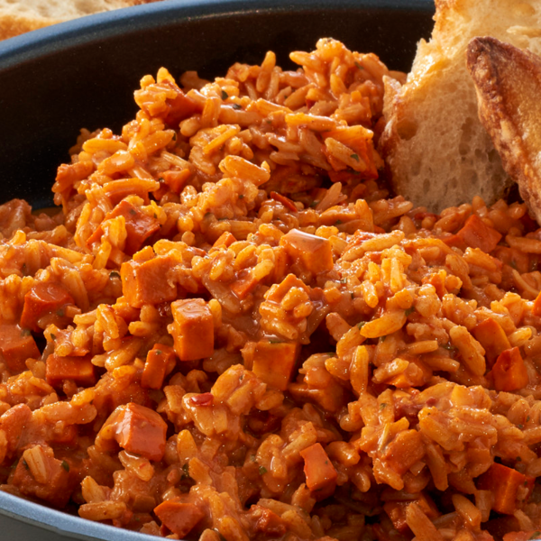 | Склад | Рис довгозерний, м`ясо курки 15%, суха соняшникова олія (містить молоко, Е551), томатний порошок, приправа (містить селера), концентрат сироваткового протеїну, модифікований крохмаль, картопляне борошно, мальтодекстрин, цибуля, помідори, дріжджів солодкий перець, сіль, мелений перець чилі, порошок часник, чорний перець, натуральний ароматизатор |