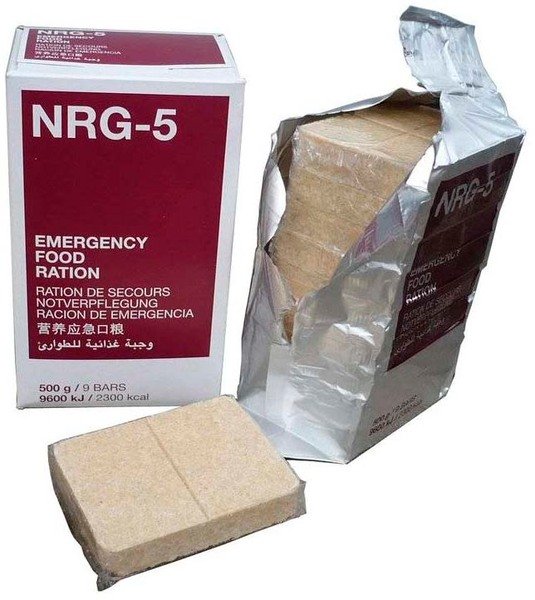 Emergency Food NRG-5 — висококалорійні пшеничні брикети від швейцарського виробника. Збалансована їжа тривалого зберігання, яку використовують у надзвичайних ситуаціях. Багаті на протеїни брикети можна вживати в оригінальному вигляді, а також подрібнювати й розбавляти водою до консистенції пюре або енергетичного напою.