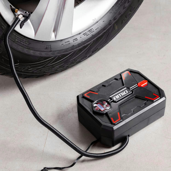 Acomp-11 02384 є невіднятною річчю транспортного засобу. Компресор фірми Amio має здатність нагнітати 10 атм (150 PSI), що дозволить без проблем підняти тиск у шинах до необхідного рівня. Також він досить швидко накачає ваше колесо R14 за пару хвилин, цьому сприяє хороша продуктивність пристрою. Компресор оснащений вмонтованим ліхтариком, що дозволить працювати навіть у темний час доби та цифровим манометром з LED дисплеєм з підсвічуванням, орієнтуючись на його показання, ви з легкістю зможете підняти тиск до рекомендованого. Компресор має довгий кабель живлення (3 м) для підключення в прикурювач 12В, а також міцний шланг (0,5 м), що дозволить доставляти прилад до кожного колеса. Корпус виконаний з легкого та міцного пластику, високої якості, що забезпечить тривалий термін служби приладу.