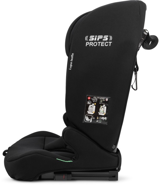| Особливості | Lupo має оптимальний захист від бічного удару, тому захищає голову, плечі та таз дитини, Підголівник можна швидко і легко відрегулювати відповідно до зросту дитини, забезпечуючи оптимальне положення, Підлокітники забезпечують додатковий комфорт та стійкість., Сидіння з м'якою оббивкою розроблене з урахуванням ортопедичних аспектів, Знімний чохол |
