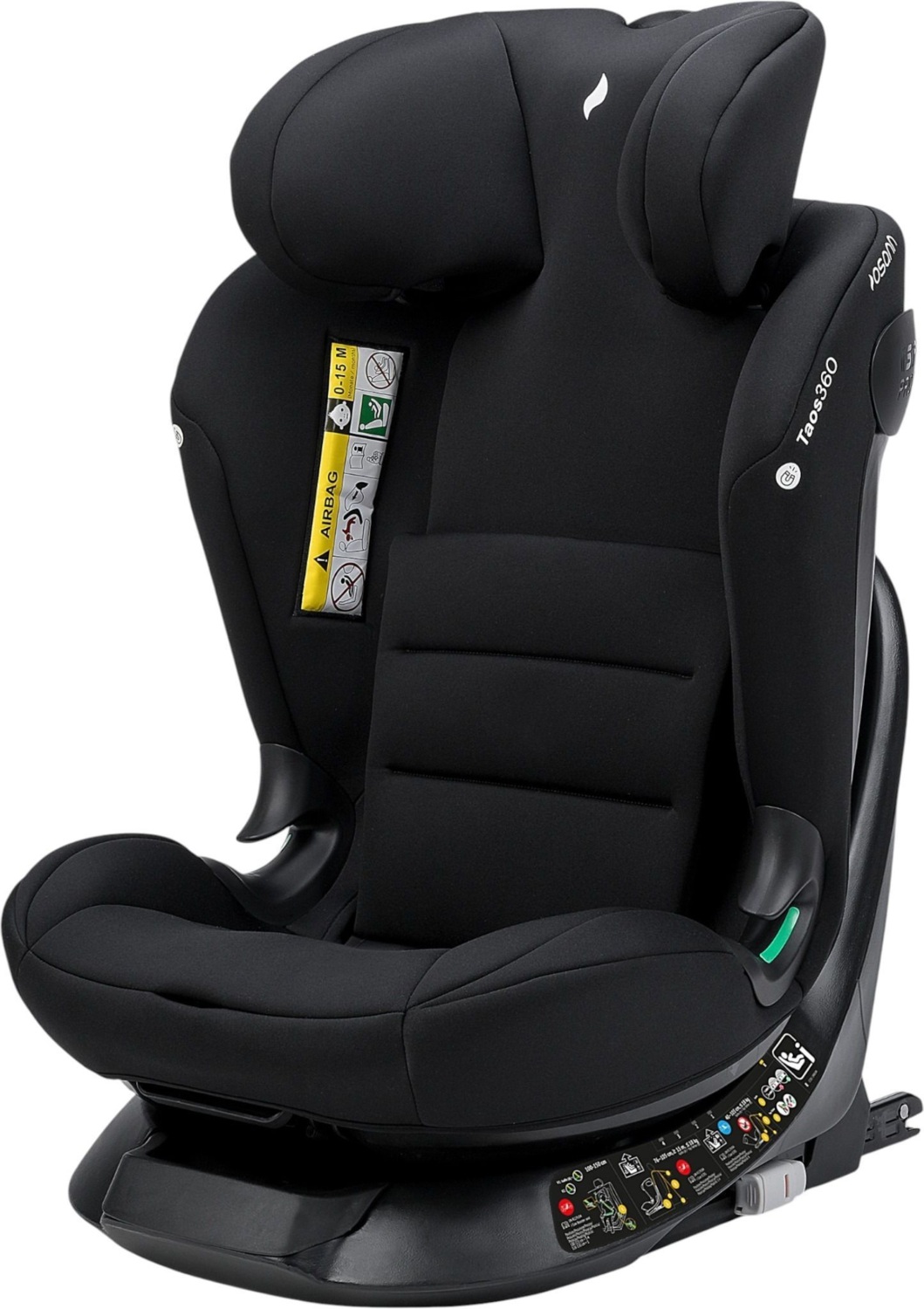 Автокрісло Taos360 можна використовувати в положенні спиною до напрямку руху для дітей зростом від 40 до 105 см, що знижує ризик травм при лобових зіткненнях. З ростом від 76 см дитину можна перевозити і в напрямку руху. У напрямку руху дитина зростом до 125 см може вибрати одне з чотирьох різних положень сидіння. Залежно від того, чи хоче ваша дитина спати або дивитися у вікно, ви можете встановити відповідний кут нахилу сидіння.