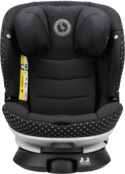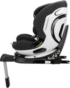 Крісло фіксується за допомогою Isofix у поєднанні з опорною ніжкою. Починаючи зі зросту 100 см (і обов’язково від 105 см), ніжку складають, а крісло закріплюють через Isofix разом із триточковим ременем авто або лише триточковим ременем.