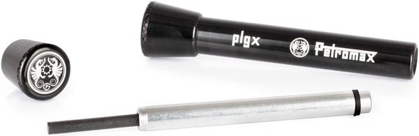 Високоякісна чорна анодована фляга для багаття Petromax складається з фляги і рукава. Кресало і мастило для плавного розпалювання знаходяться у відповідних резервуарах на торцях. Вони добре фіксуються кришками, що загвинчуються. Відкрутивши ємність для кресала на поршні, ви зможете витягти поміщений туди додатковий стрижень із вогнетривкої сталі. Сама колба для багаття зберігається у відповідній сумці для транспортування, щоб не займати багато місця. Таким чином, ніщо не загубиться, а вогненний поршень Petromax добре підготовлений до багаторазового використання для розпалювання.
