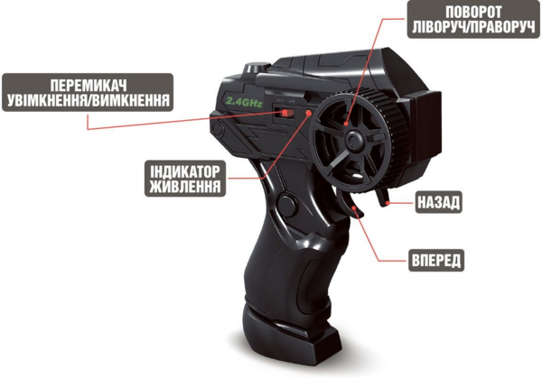 - Живлення – 2 батарейки типу АА для пульта керування (до комплекту не входять), акумулятор 3,7 В.