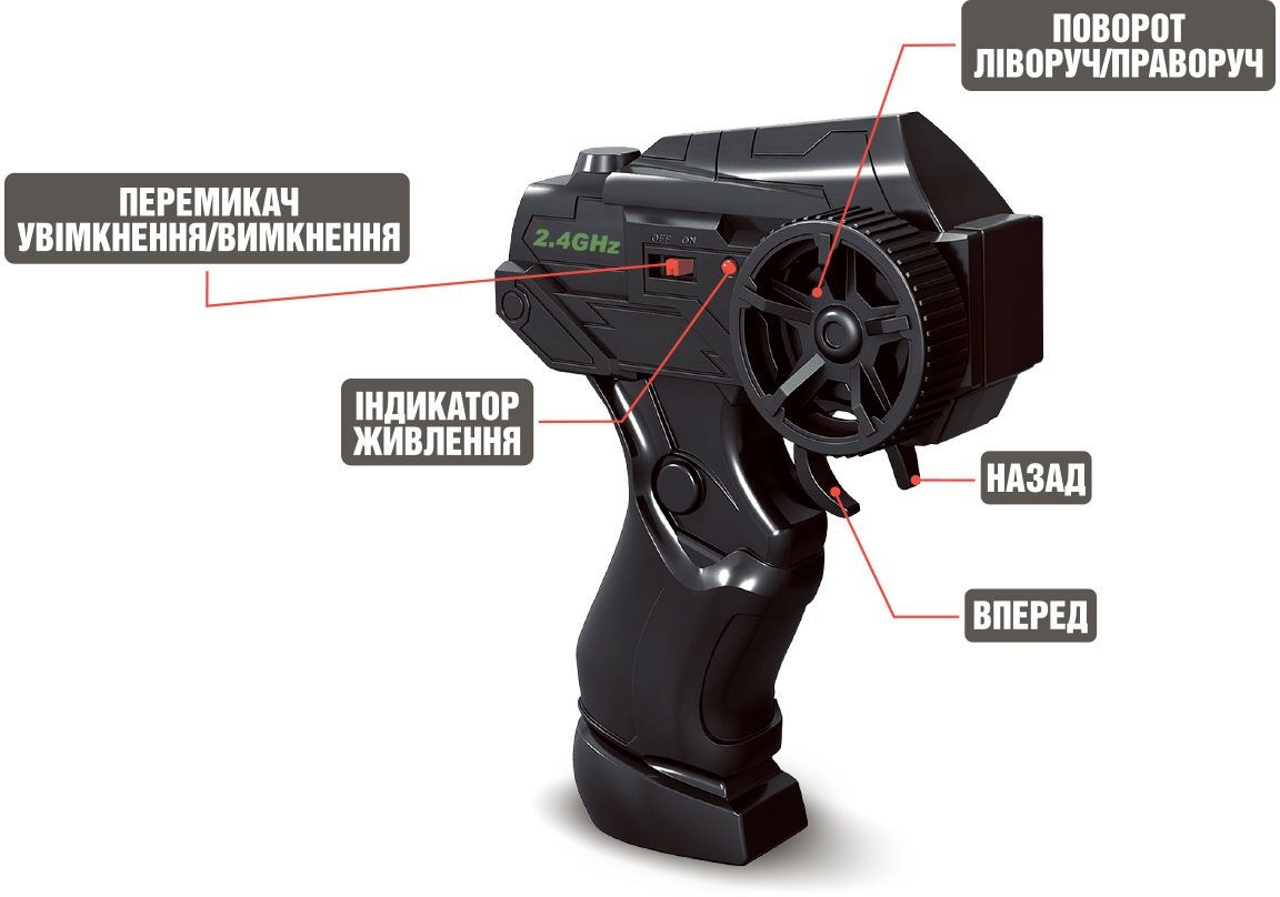 - Живлення – 2 батарейки типу АА для пульта керування (до комплекту не входять), акумулятор 3,7 В.
