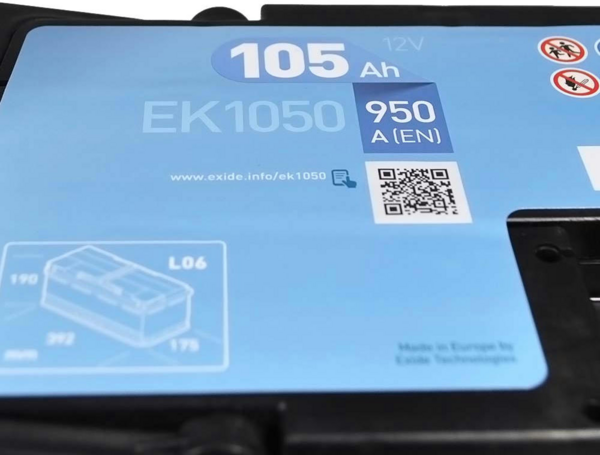Автомобільний акумулятор Exide 105Ah-12v AGM, R+, EN950 (52371131555) (EK1050)