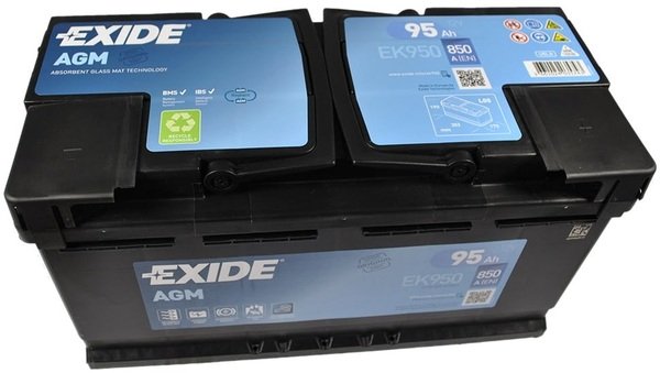- Автомобільний акумулятор Exide 95Ah-12v AGM, R+, EN850 (52371131556) (EK950)