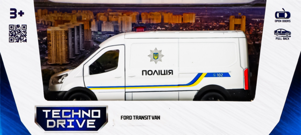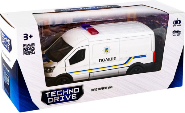 Автомодель Ford Transit Van 2018 Поліція - елегантний спосіб подарувати радість знайомства зі спецтехнікою. З такою машинкою можна створити безліч варіантів гри, а ще поповнити свою колекцію! Ця автомодель створена, щоб сподобатися як малюкам, так і дорослим!