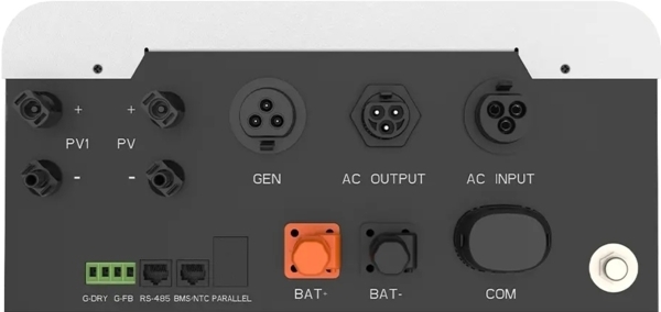 Генераторний вхід забезпечує автоматичне перемикання на резервне джерело при відсутності сонячної енергії та розрядженій батареї. Інвертор підтримує несбалансоване навантаження та напівхвильові споживачі, що розширює сферу застосування. Інтегрований захист від перенапруг, короткого замикання та перегріву гарантує безпеку акумулятора та самого пристрою.