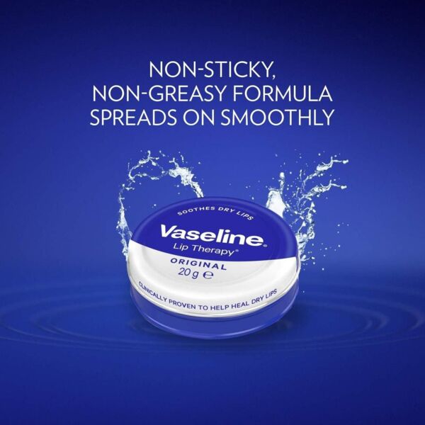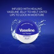 Оригінальний бальзам для губ Vaseline виготовлений зі 100% чистого вазеліну. Він захищає губи від висихання та утримує природну вологість шкіри. Захисний верхній шар шкіри на губах тонший, ніж на інших ділянках шкіри. У результаті губи більш схильні до зневоднення і більш схильні до сухості. Вазеліновий бальзам для губ захищає губи від втрати вологи й, таким чином, допомагає підтримувати шкірний бар'єр губ.