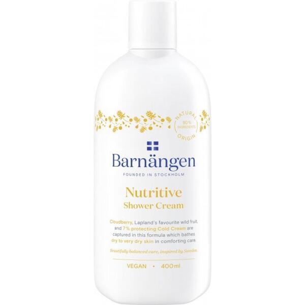 Крем-гель для душу Barnangen Nutritive Shower Cream із морошкою – продукт шведського бренду Barnangen. Основою продукту є Холодний крем – тисячолітній рецепт краси, до складу якого входять емульсії, рожева вода, бджолиний віск та ліпіди. На відміну від інших кремових технологій, Холодний крем дає відчуття глибокого зволоження шкіри, а також відчуття, що «леденять» (завдяки чому і отримав назву «холодний»).