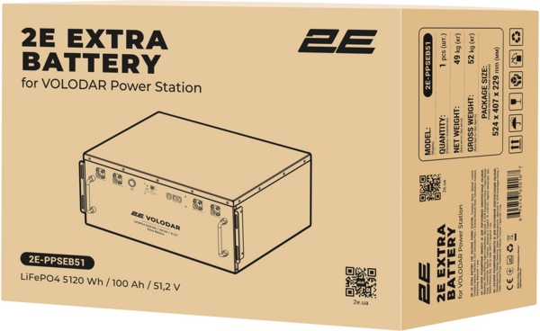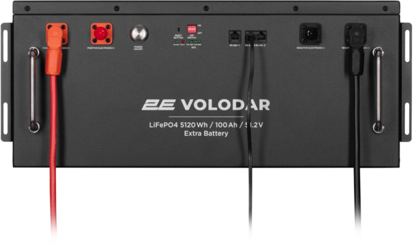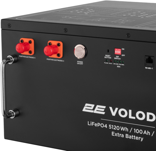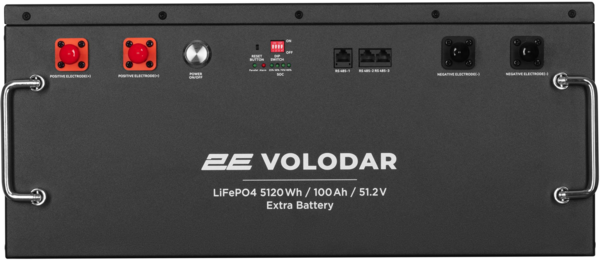 Батарея розширення ємності 2E для ПЕ Volodar у металевому корпусі повністю підготовлена для підключення до електростанції та налаштована вже з коробки. Підключення додаткових акумуляторів 5 кВт/год для розширення ємності є простим і зрозумілим. Все, що потрібно, – з’єднати зарядну станцію та додатковий акумулятор кабелями, які є в комплекті та налаштувати DIP-перемикач за схемою, нанесеною на кожному акумуляторі. Передбачено під’єднання до 15 додаткових акумуляторів. Загальна ємність при цьому становитиме до 82 кВт/год. Для вибагливих і технічно досвідчених користувачів доступні 38 додаткових режимів та налаштувань. Вбудований новий гібридний сонячний інвертор заряду 5000 Вт інтегрує зберігання сонячної енергії та її накопичення з виходом чистої синусоїдальної хвилі змінного струму. Завдяки керуванню DSP і вдосконаленому алгоритму керування він має високий відгук швидкість, надійність і відповідає промисловим стандартам.