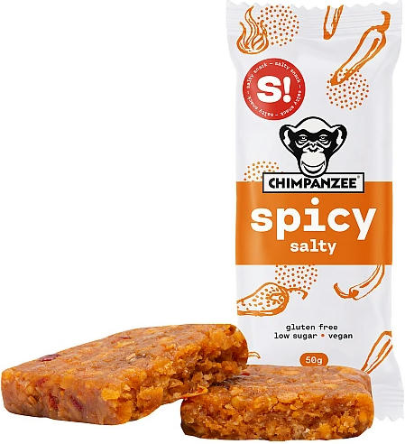 Chimpanzee Salty Bar Spicy — солоний енергетичний батончик з арахісом і копченою паприкою. Багатий на протеїн, клітковину та корисні жири. Завдяки мінімальному вмісту простих цукрів має низький глікемічний індекс. Повністю складається з натуральних інгредієнтів.