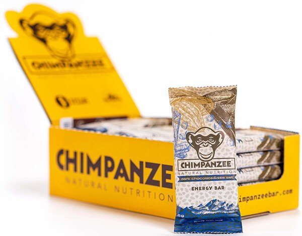 Chimpanzee Energy Bar Dark Chocolate & Sea Salt — енергетичний батончик зі шматочками гіркого шоколаду та морською сіллю. Має повністю натуральний склад, наполовину складається з органічних продуктів. Містить мікс швидких та повільних вуглеводів для рівномірного насичення організму енергією.