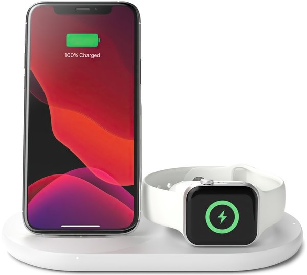 - Бездротовий зарядний пристрій Belkin 3-in-1 Wireless Pad/Stand/Apple Watch, white (WIZ001VFWH)