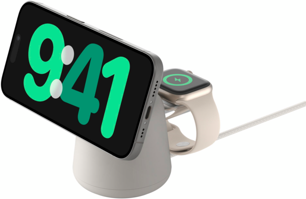 - Бездротовий зарядний пристрій Belkin 2в1 MagSafe iPhone/Watch/AirPods Sand Mass (WIZ020VFH37)