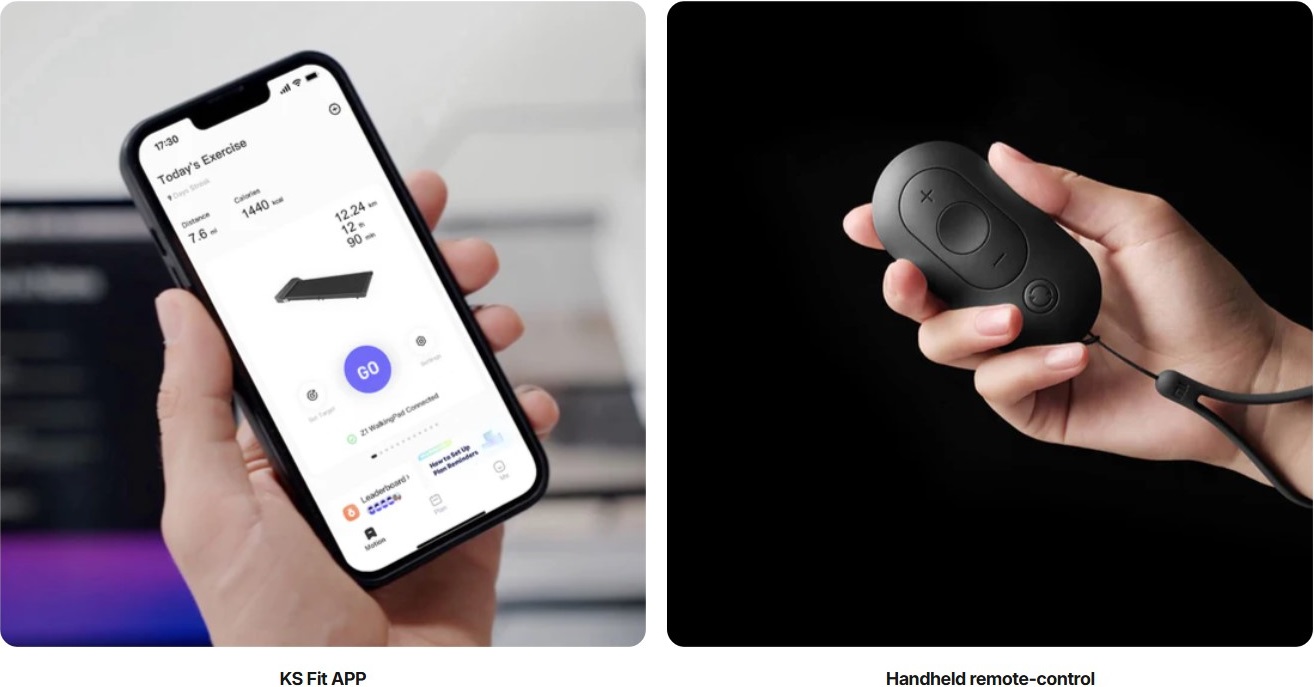 Незалежно від того, чи ви хочете самостійно контролювати швидкість за допомогою пульта дистанційного керування, чи хочете, щоб це робила програма, обидва варіанти доступні. Завантажте безкоштовну програму KS Fit, підключіться через Bluetooth, і вона все налаштує за вас.