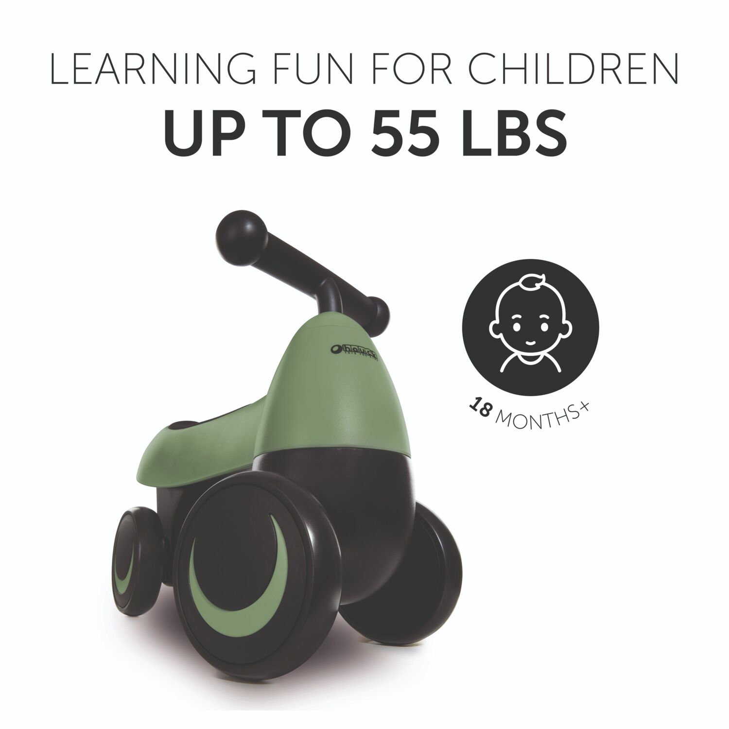 1st Ride Four - ідеальна іграшка на колесах для всіх юних гонщиків. Починаючи з 18 місяців, ваш малюк може досліджувати навколишній світ і їздити по дому на цьому чудовому 4-колісному транспортному засобі. Ергономічна форма підтримує штовхаючі рухи та не дає маленьким ніжкам торкатися задніх коліс. Ваша дитина може тренувати свою спритність, моторику та координацію, отримуючи при цьому масу задоволення від водіння.