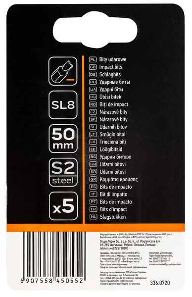 Біти Neo Tools ударні NEO S2, 50 мм, SL8 – 5 шт.