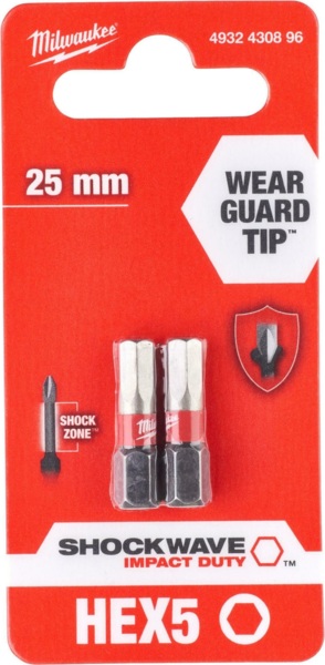 - Біти Milwaukee Shockwave, набір 2шт, Hex5х25мм (4932430896)