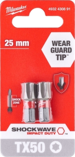 - Біти Milwaukee Shockwave, TX50х25мм, набір 2шт (4932430891)