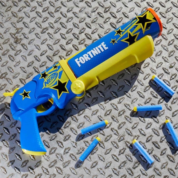 Бластер Nerf Fortnite Half Tone Hero - зброя з відеогри Fortnite. Незвичайний і яскравий. Щоб отримати доступ до патронника, вам необхідно «переломити» ствол. Він має вигляд двостволки, але, відкривши патронник, ви зможете зарядити відразу шість стріл.