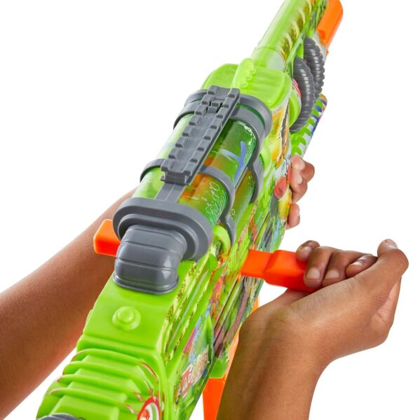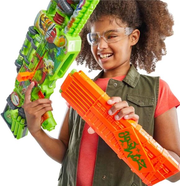 Бластер Nerf Zombie Corrupter повністю прикрашений барвистими графіті-прикрасами, що привертають увагу, з обох сторін.