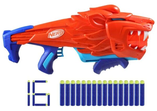 Бластер Nerf Junior Lionfury має приголомшливий дизайн у вигляді лева, який передає зовнішній вигляд цієї лютої тварини з яскравими кольорами і захоплюючими деталями! У комплект із цим бластером-хижаком Nerf входять 16 стріл Nerf Elite 2.0.