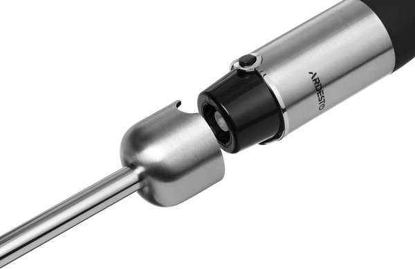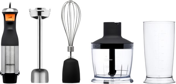 Преміальний ручний блендер занурювального типу для швидкого подрібнення інгредієнтів та приготування різноманітних соусів та напоїв. У комплектацію входять насадки для змішування, подрібнення, збивання, а також мірний стакан на 600 мл.
