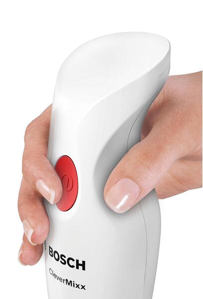 Завдяки ергономічній ручці блендер зручно лежить в руці. Крім того, мала вага ще більше полегшує роботу.