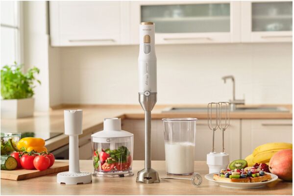| Комплектація (можливі зміни в різних поставках) | Блендер, Документація, Мірна склянка, Міні-подрібнювач, Насадка – 3 шт., Ніжка блендера |