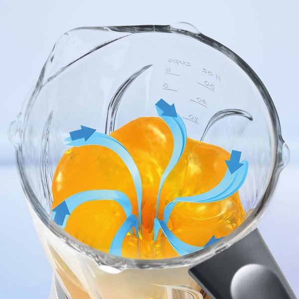 Високоякісний скляний глечик з товстими стінками ідеально підходить як для гарячих супів, так і для холодних напоїв. На внутрішній стінці глечика є 3D прискорювачі потоку – для ефективного змішування та отримання однорідних результатів.