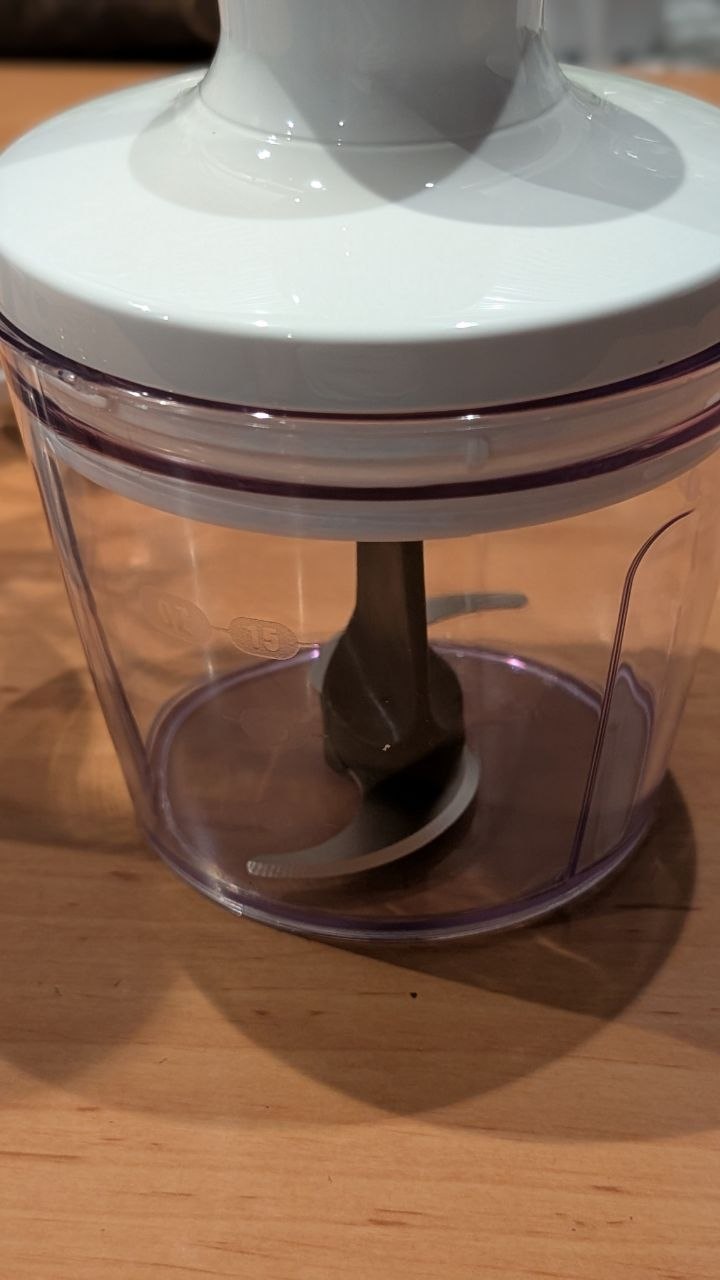 Этот блендер - незаменимый помощник на нашей кухне.С его помощью мы готовим и фарш для котлеток,и деруны,и паштет,и измельчаем овощи(например,морковь)в суп или в салаты.