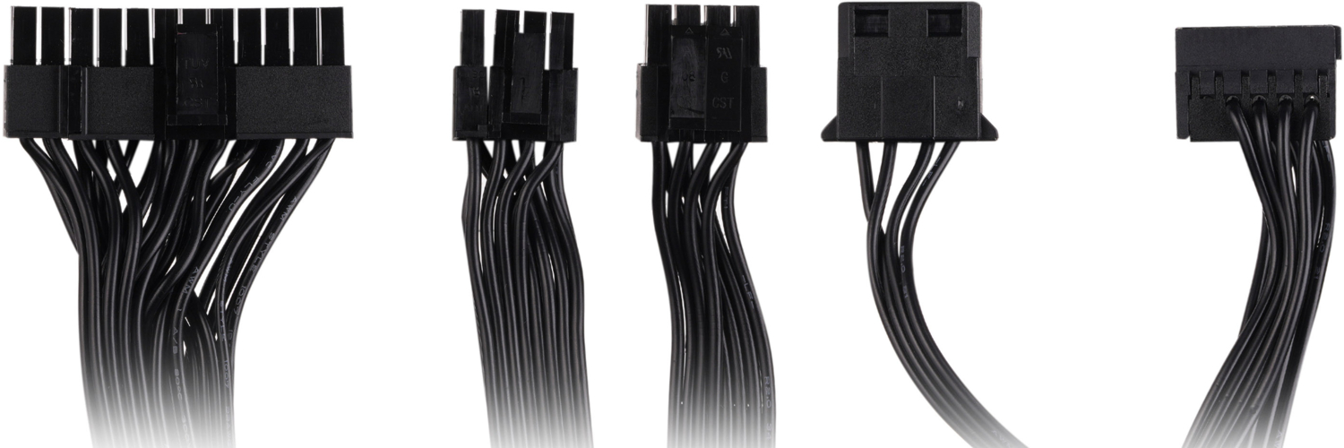 - оптимальна довжина кабелів для підключення до компонентів, для забезпечення живлення та зручного складання системи. Плоскі чорні кабелі – надійні, міцні та досить гнучкі для прокладання та організації кабель-менеджменту в сучасному корпусі;
