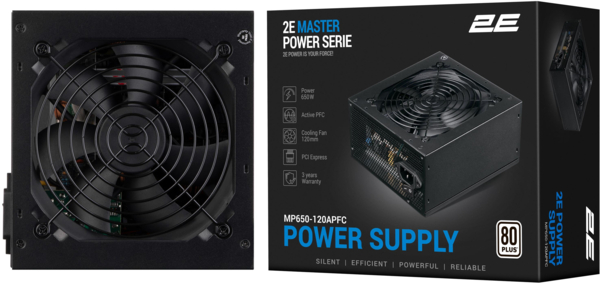 Блок живлення 2E MASTER POWER (650 Вт) із кабелем живлення для сучасних персональних комп'ютерних систем середнього рівня складності офісних ПК. Сертифікований та відповідає стандарту 80+ White.