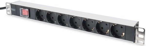 - Блок розеток DIGITUS 1U, 7xSchuko, 16A, 250V, вимкн., вилка Schuko