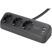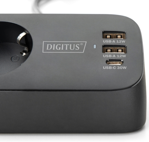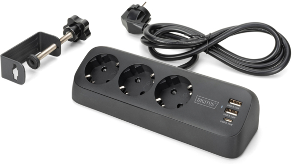 - Блок розеток DIGITUS Office, 3xSchuko, 2xUSB-A, 1xUSB-C, 16A, 1.5м, вилка Schuko, чорний (DA-70625)