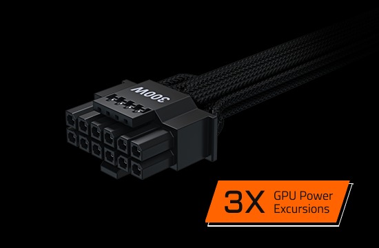 Розроблений для задоволення вимог систем нового покоління, цей блок живлення, сумісний з ATX 3.1, підтримує до 3× GPU та 2× системні коливання напруги з ефективністю 70% при низьких навантаженнях. Високопродуктивний 16-контактний кабель забезпечує до 300 Вт для відеокарт PCIe Gen 5, таких як GeForce RTX 50 Series та новіші.