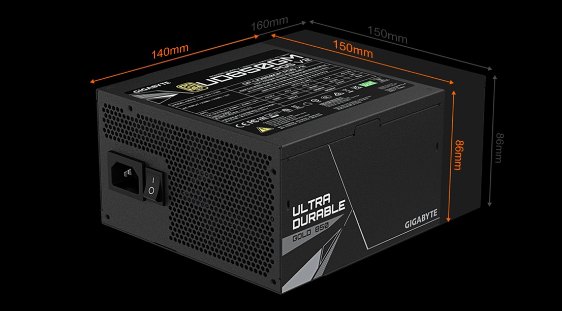 Використовуючи досвід компанії Gigabyte в області тепловідведення і вибору матеріалів, блок живлення був зменшений до всього 140 мм, що забезпечує максимальну продуктивність і сумісність навіть з корпусами з обмеженим простором.