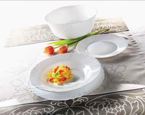 Обідня тарілка прикрашена витонченим орнаментом по краю і може поєднуватись з обідніми та десертними тарілками з тієї ж колекції. Стиль цієї тарілки чудово поєднується з класичною обстановкою або в стилі «Шебі-шик».